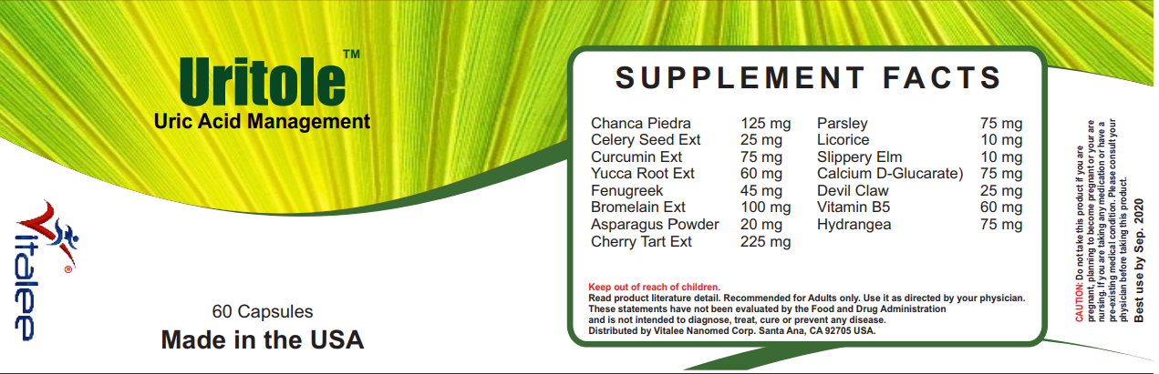 Uritol-Oxalate Stone Stoper, Gout Relief and Uric Acid buildup Flush (Caps 60ct)